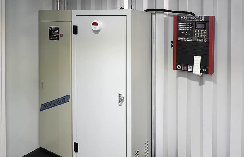 預(yù)制艙內(nèi)部也配備了全套消防系統(tǒng),例如煙霧報(bào)警器、氣溶膠滅火裝置等,可以自動(dòng)感知火情、自動(dòng)滅火,保障人員和設(shè)備的安全。